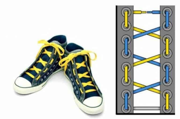 Bước 2: Khi đã xỏ hai đầu dây qua hai lỗ dưới cùng của đôi giày. Bắt chéo dây giày sang lỗ bên trái, lỗ bên phải ở trên. Sau đó, kéo căng 2 đầu dây giày sao cho ôm chân nhất nhưng vẫn tạo cảm giác thoải mái.